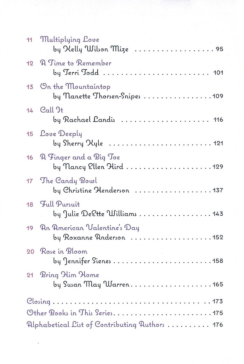 These stories represent all kinds of love. Woven through each story is the sustaining hand of our loving heavenly Father. On Valentine's Day and every day--whether your life is chocolates and flowers or loneliness and pain--let these stories fill your heart with hope, peace, and most important, love.